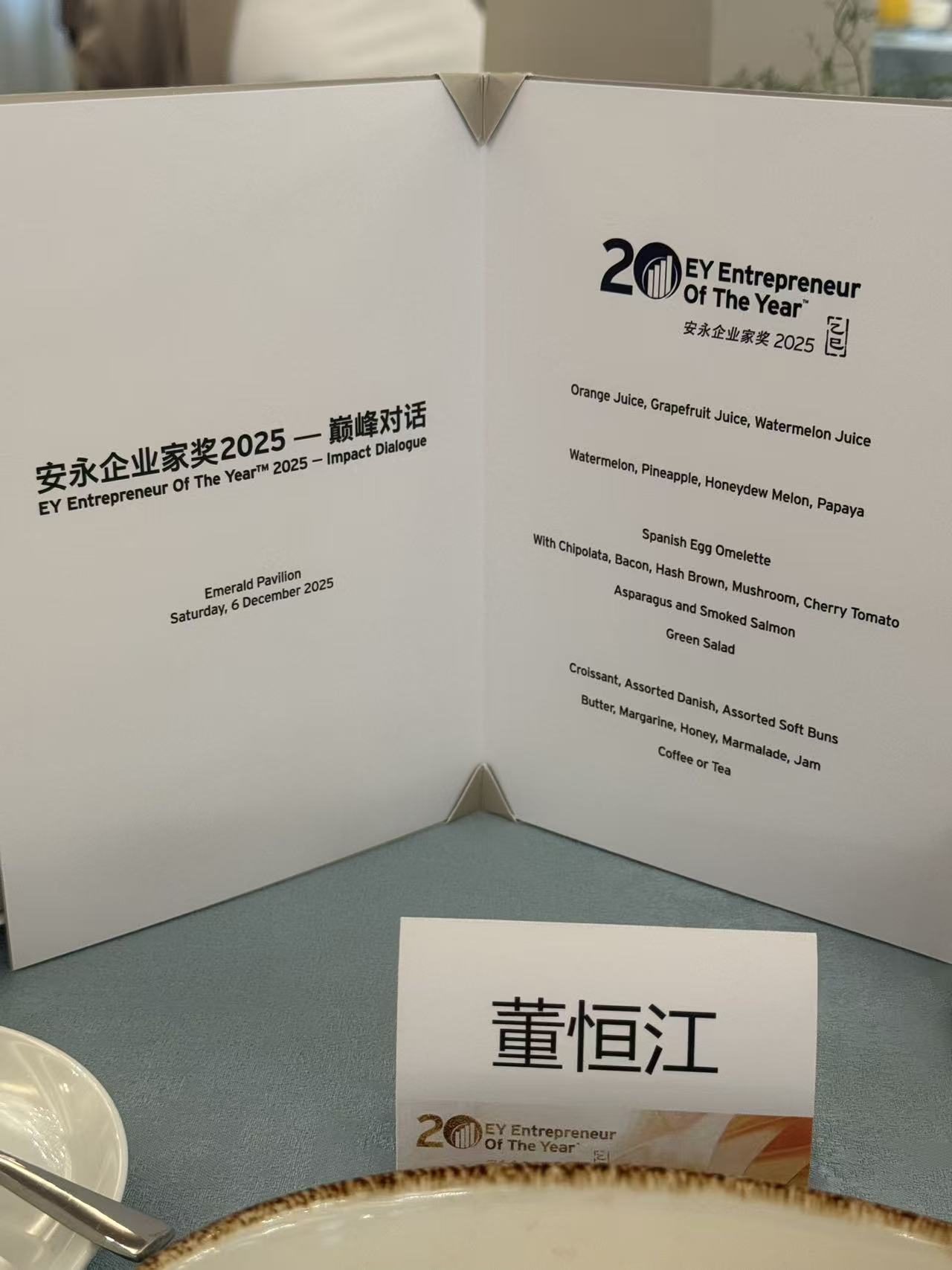 2025年12月6日,由安永主办的 “安永企业家奖2025——巅峰对话”早宴 在香港合和酒店21楼翡翠亭圆满举办。活动汇聚大中华区多位行业领袖、企业家代表及政策界嘉宾,共同探讨全球趋势变革下的香港定位、供应链及资金链新发展方向,以及企业在新周期中的创新路径。