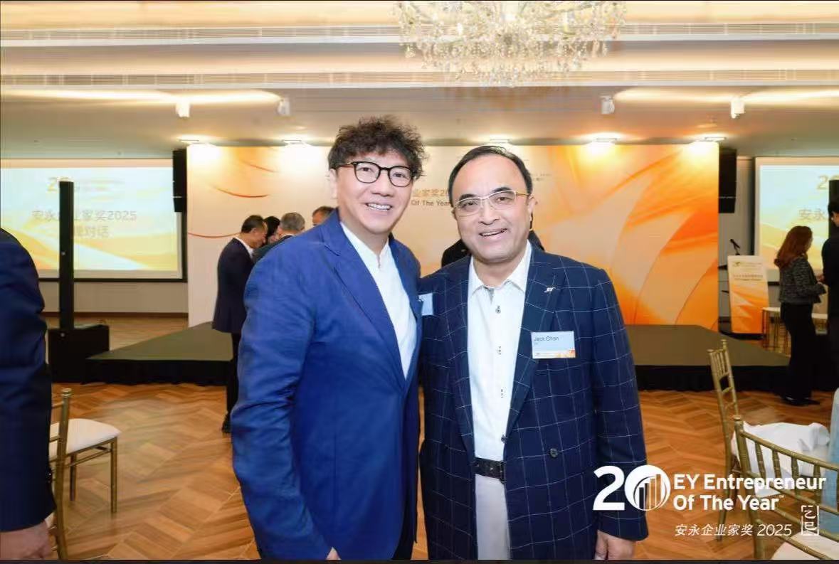 董恒江出席"安永企业家奖2025——巅峰对话”早宴与安永大中华区主席陈凯合影留念