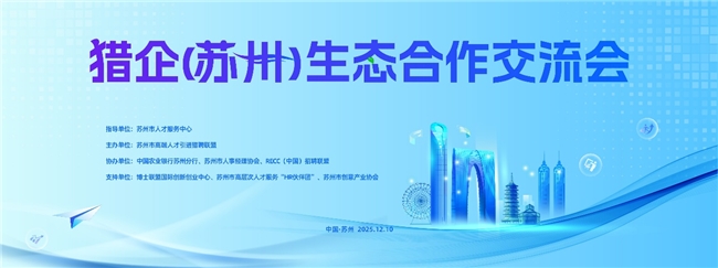 为充分发挥猎头机构在招才引智中的重要作用,进一步推进苏州市人才工作社会化、专业化、市场化进程,合力助推百万人才新增计划,12月10日,由苏州市高端人才引进猎聘联盟主办、中国农业银行苏州分行、苏州市人事经理协会、RECC(中国)招聘联盟协办的猎企(苏州)生态合作交流会在苏州市人才服务中心顺利举行。来自海内外知名猎企、行业协会及金融机构等近200名代表齐聚,共探人才服务协同发展新路径。